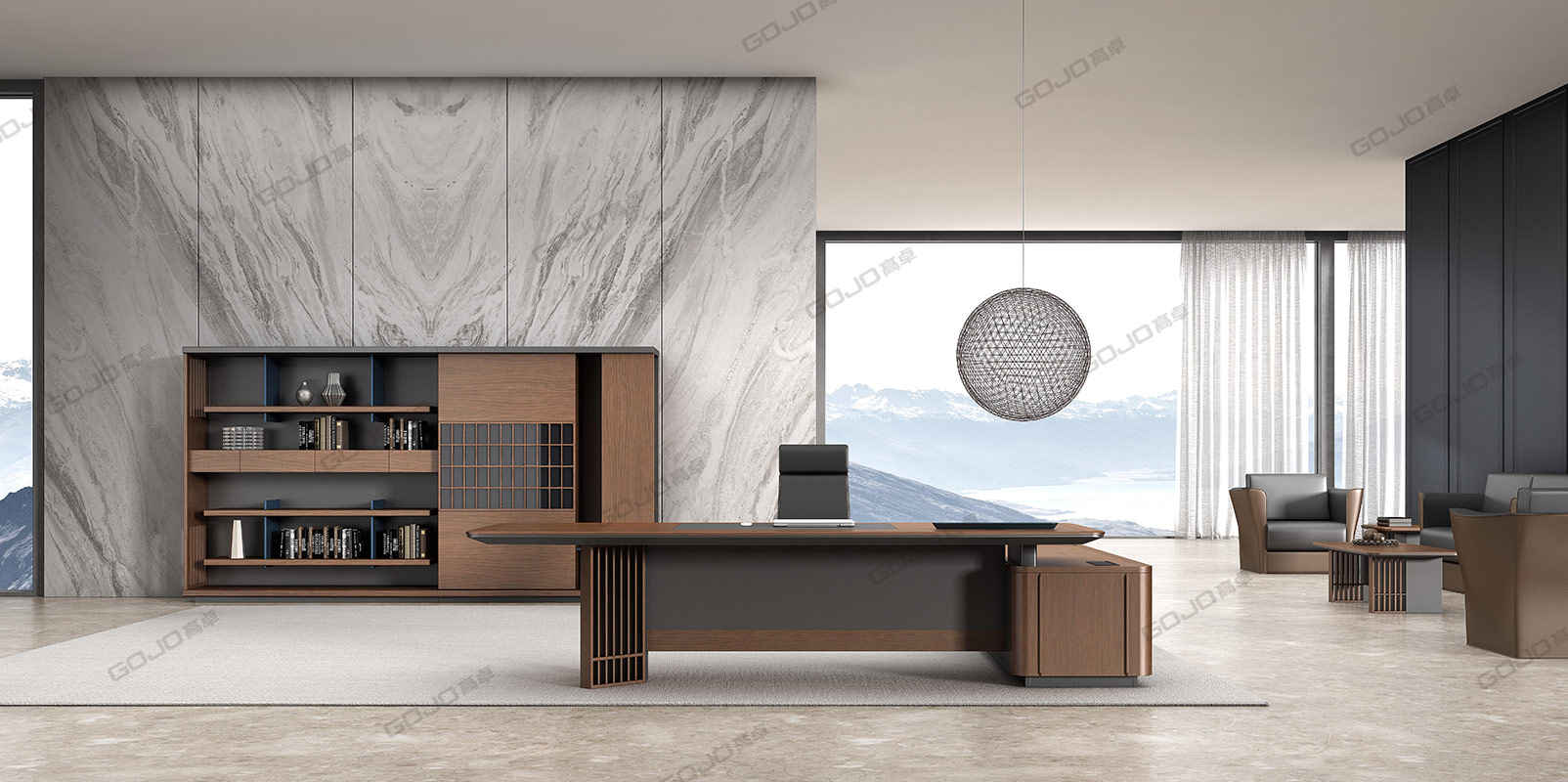 观和/实木班台
