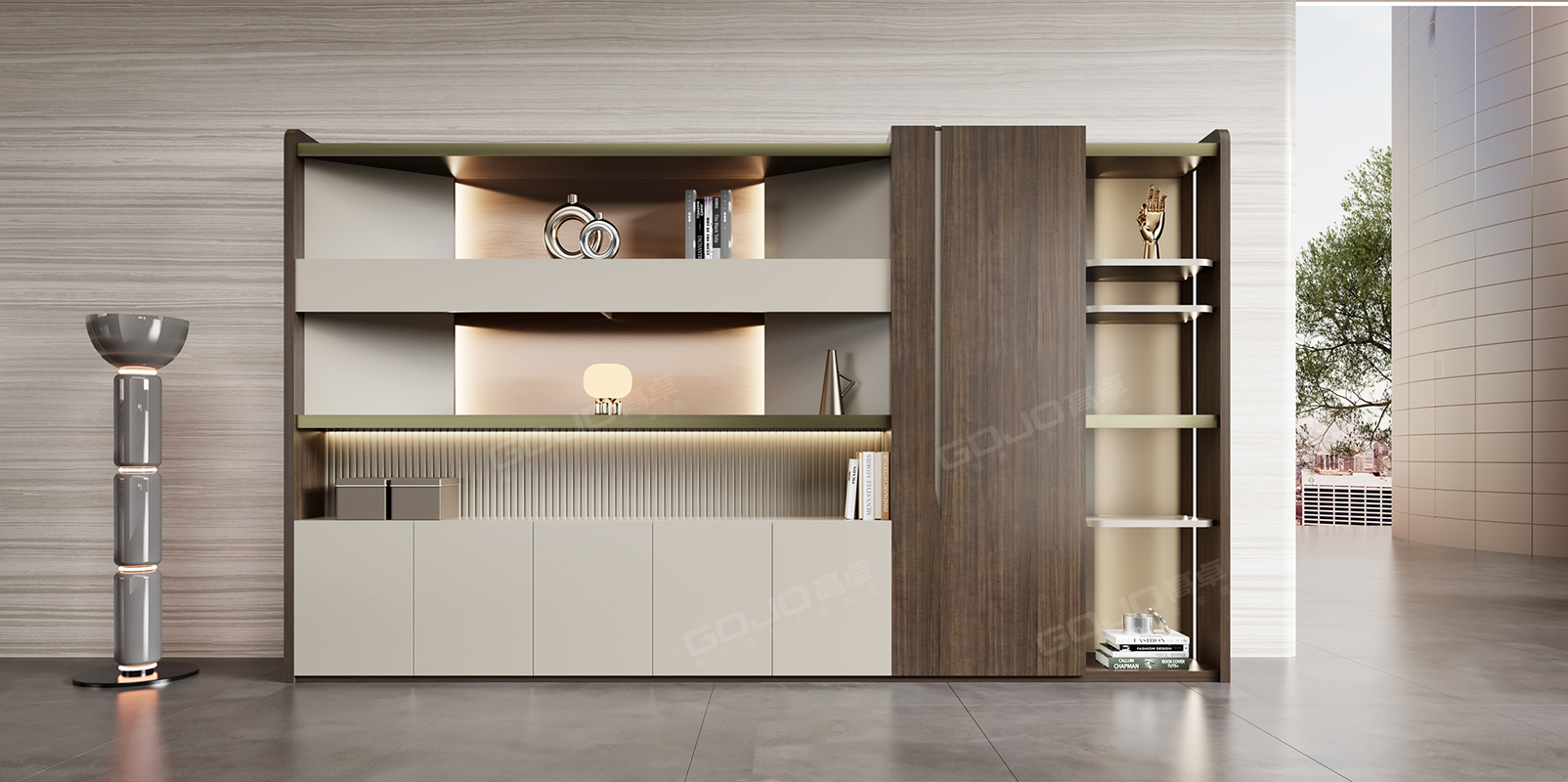 文件柜灯带设计,充足储存空间的同时更具美感